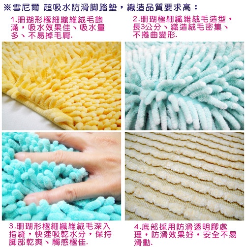合購介紹 【驚爆買2送2】雪尼爾地墊/超吸水防滑腳踏墊/超乾爽浴室地墊 |