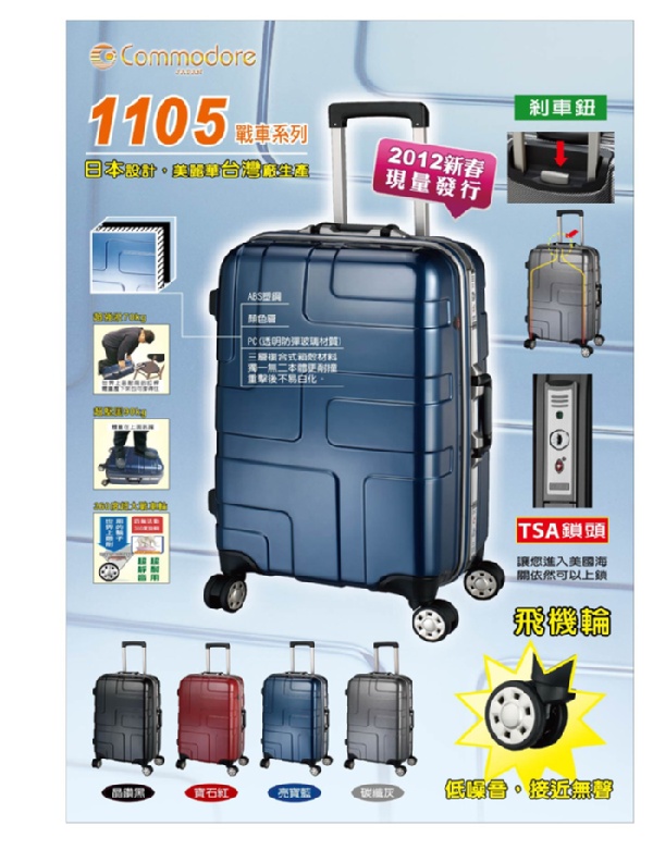 1105型 亮面剎車型 - 2012 新款 : 晶鑽黑、寶石紅(24吋停產)、亮寶藍(24吋停產)、碳纖灰(24吋停產)