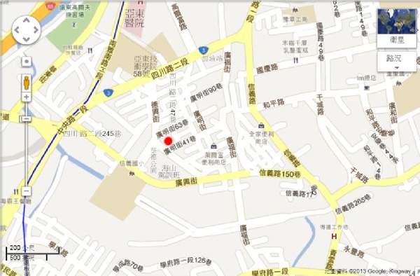 亞東技術學院門口(新北市板橋區四川路二段58號 )正對面板橋區德興街步行直走進去,約3分鐘後,穿過一個紅綠燈再往前直走約十步,左手邊福德宮接下來就是全聯福利中心.全聯福利中心入口旁有一很大樓梯,直通2樓警衛室.