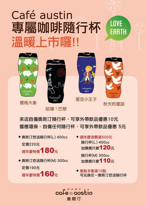 Love Earth!! 四款奧斯汀隨行杯上市囉!!