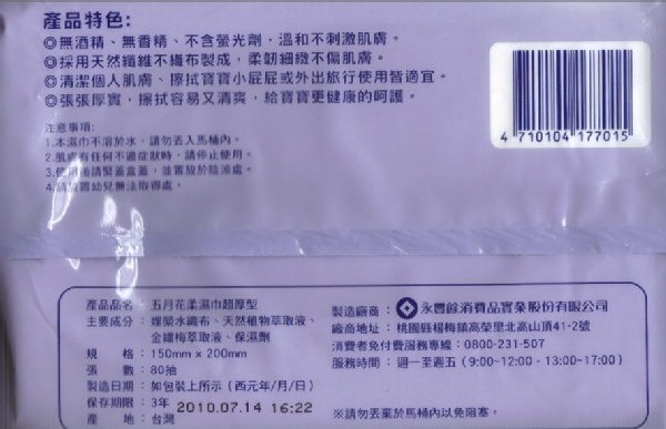 1.五月花柔濕巾80抽*24包 超厚型-五辦花(特賣商品) $850,$36 / 包~只有72包