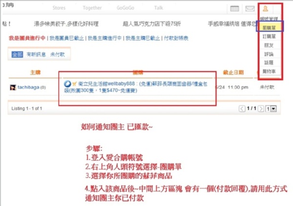 匯款完請利用愛合購的付款回覆通知團主! 如下圖所示