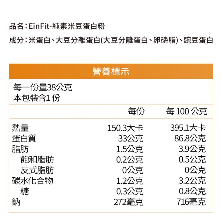【EinFit】純素米豆蛋白粉 - 38g/包