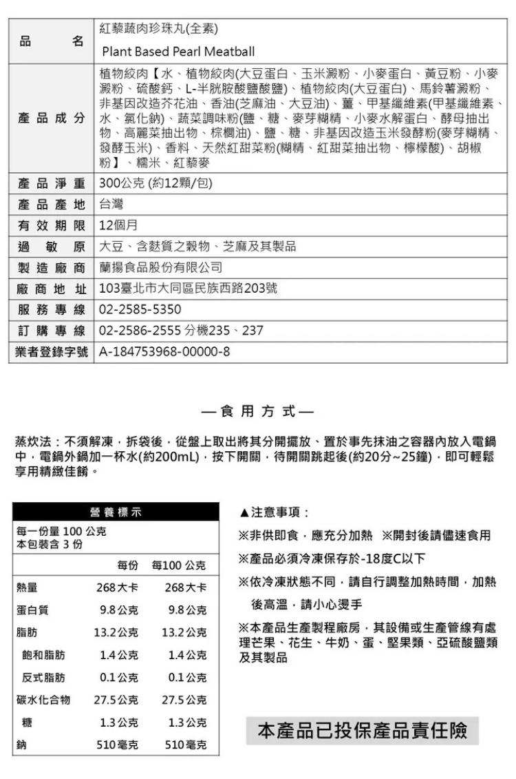 【蘭揚食品】紅藜蔬肉珍珠丸-全素 300g/包