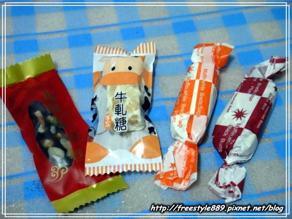 試吃的產品有: 原味牛軋糖、法式杏仁牛軋糖、楓糖紫米夏果爆爆糖、南棗核桃糕各一個。