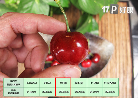 美國加州櫻桃是以”Row”來分級,Row的數字越”小”,代表櫻桃的果粒愈”大”。(本次所提供的是10Row的特級櫻桃喔!)