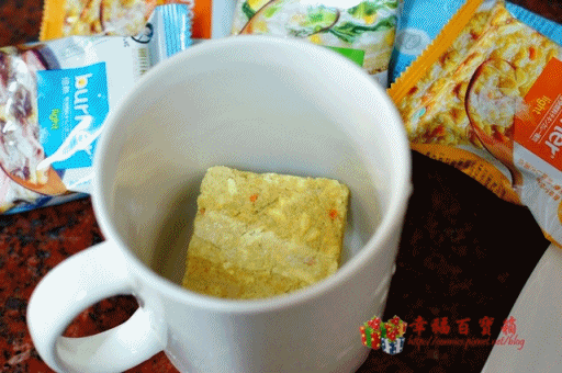 拆封後,這美味輕食粥就是長這樣~方型塊狀,好特別哦!