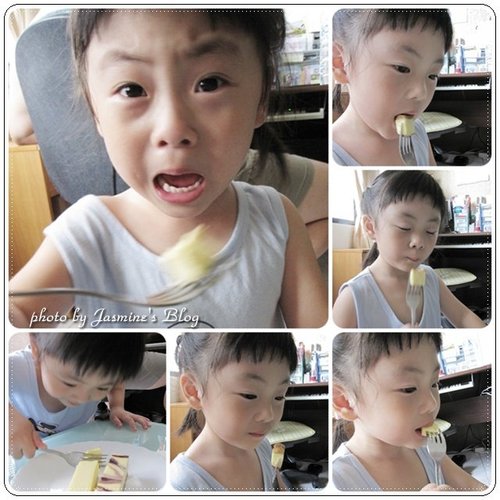因為被mibo阿姨吃掉最後一口而大哭的小妞,居然真性情的表達了她愛乳酪條的態度和心情,不過還好在前面的過程裡,小妞喜悅滿足的表情還是一覽無遺的捕捉到了,一口接一口的停不下手,就是要吃個夠!記得第一次看我從冷凍拿出來時,還問我:這是冰淇淋嗎?