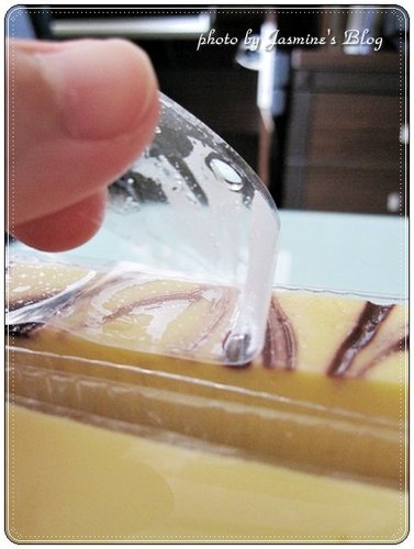 周到的還不只這樣,拆開包裝袋,看見乳酪條表層還鋪上一張膠膜,連如此細微之處都謹慎做到,不得不向金哈慕尼店家致敬啊~~
