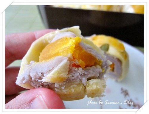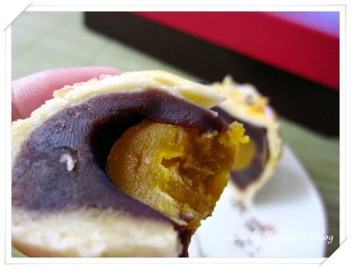 吃蛋黃酥時烏豆沙的微甜與蛋黃的鹹香一起交融,那種契合到不行的滋味~~你一定要親自嚐過才能深刻體會,就是讚啦~~