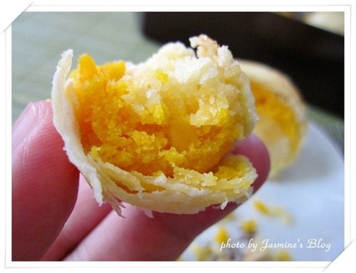 看看這新鮮且飽滿的鹹蛋黃,閃耀著金黃光澤,油潤透亮的蛋黃在嘴裡咀嚼幾下,立刻產生一種沙沙的綿細感,蛋黃中的微微油份滲透到舌根裡,就是這鹹香濃獨特到爆的滋味,不斷在腦海中翻攪,讓我永生愛上的美味~~ 我愛蛋黃酥!!