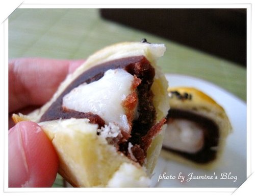 吃披薩有乳酪會牽絲,吃麻糬酥有軟Q麻糬會牽絲,白胖胖的Q軟麻糬柔軟的程度就像會流動般的呼之欲出,這麻糬不黏牙,份量則是剛好一口,很適合當作午茶點心來享用。