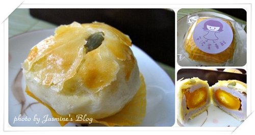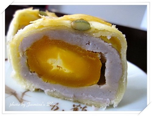 微甜芋泥包裹著鹹蛋黃,芋泥鬆軟香綿透著淡雅香氣,鹹甜參半相互交融實在好滋味啊~~外皮點綴上一顆松子,更增添些許風雅。