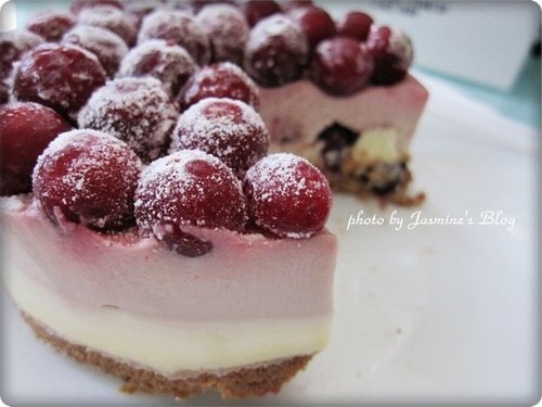 粉紅與白的相間,如夢幻般的蔓越苺提拉米蘇,裡面依舊是自製熬煮的蔓越莓果醬,