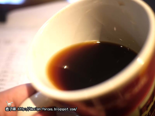 沖泡好的咖啡顏色層次非常鮮明,在品嚐前,賤賤要先聲明,這是我第一次喝純黑咖啡...