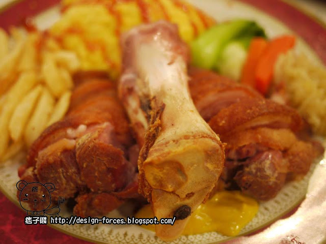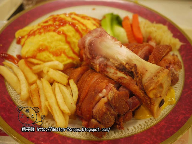 不過所有的悶都在上菜的那刻消逝了,份量也未免太大了,還有蛋包飯,連糖看到的時候都說,我們兩個應該一起吃這個的,事實證明,吃到後面光吃豬腳就飽了,飯也沒吃到幾口,其他配菜薯條等就更不用說了,連豬腳還剩一些打包帶走呢。