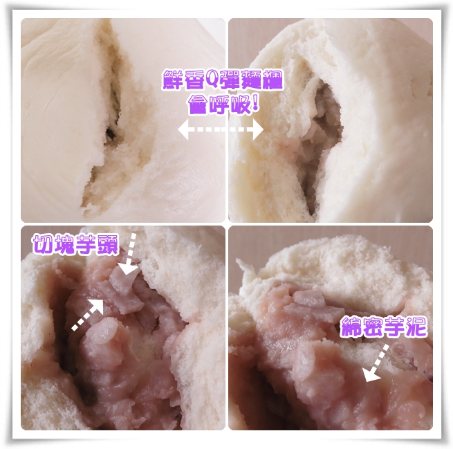 頭一次看到有芋頭切塊的「芋泥包」耶,