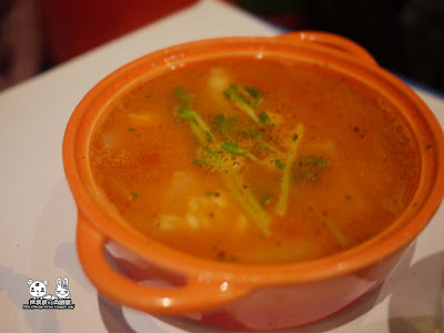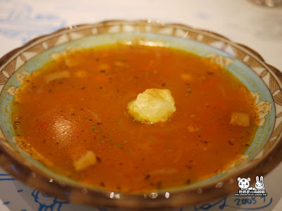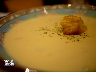 這是【廚娘馬鈴薯奶油濃湯】,湯頭濃而不膩,屬於淡口味的,一下子就被兔眠眠秒殺了。
