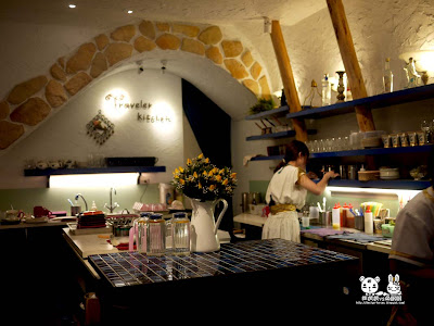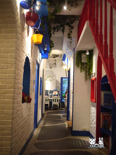 沒多久後,希臘的女神替我們為這家餐廳做了簡短的導覽,並帶我們進入希臘的溫馨客房,也就是今天的用餐區,沿途的走道,彷彿是希臘的街,很有感覺呢。
