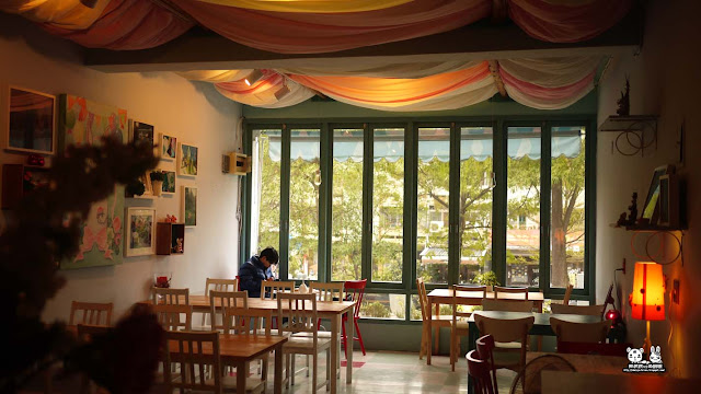在還沒進去店內前,我們就深深的被門外的裝潢給吸引住,粉紅與藍的搭配,外型搶眼又不突兀,門窗上還印有兔子造形的圖案,十分特別呢。