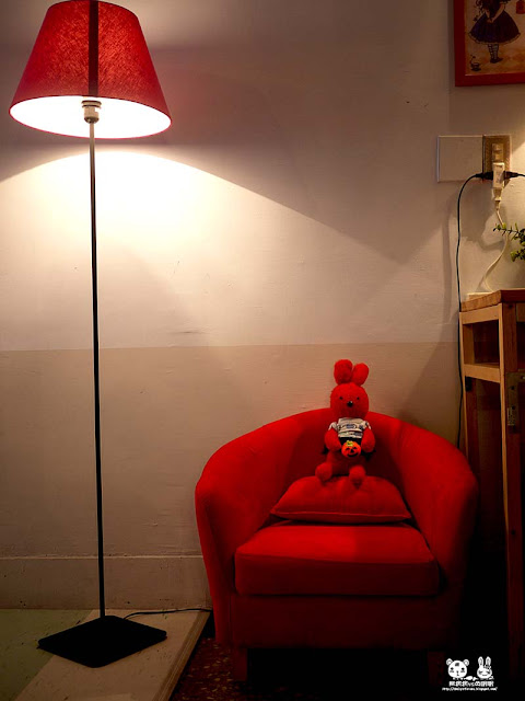 走到二樓的樓梯口,還有熱情的小紅兔,可愛俏皮的歡迎您到來(猜想這應該只是裝飾不能坐吧...)。