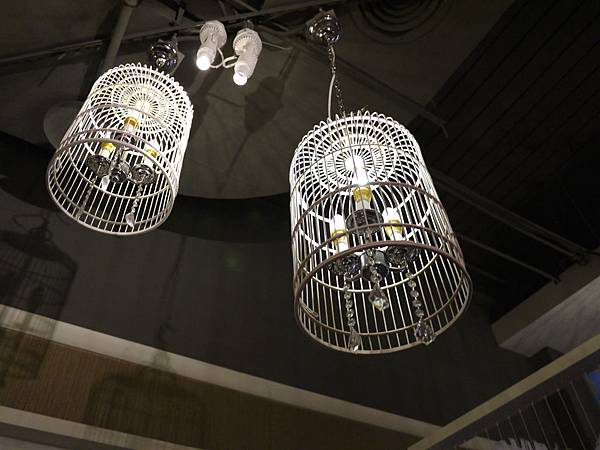 天花板上方也垂吊了一樣的鳥籠吊飾,每隔一小段就有吊飾,當作是照明燈、桌燈之類的,很特別!!