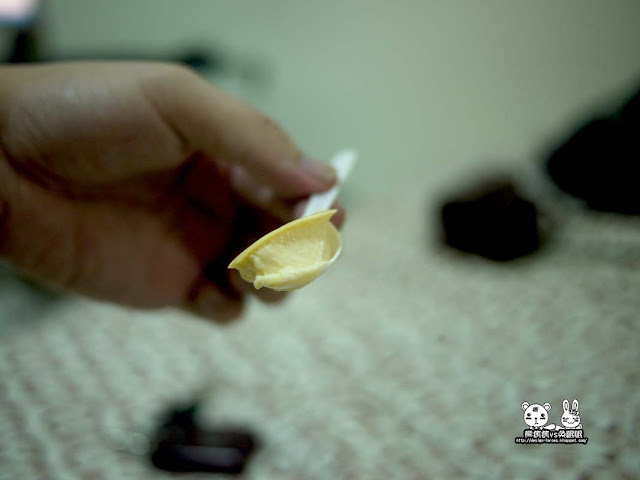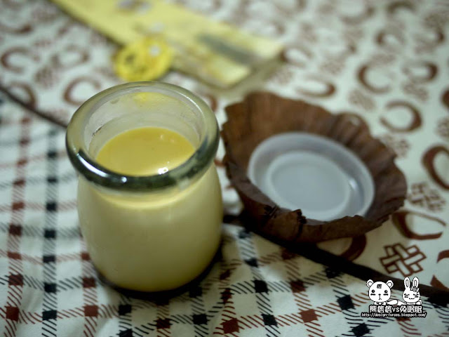 一開始熊很笨....沒有注意看說明,就直接把上層的布蕾吃光後,在吃它的焦糖!但也因此得出一個結論,由於禾佳烘焙特濃布蕾並沒有加任何一滴水,單吃上面的布蕾會有點小乾,下面的焦糖則太濃郁,比較建議將兩著混合吃,才能吃到口感濃郁滑順的好滋味,而且混起來的味道很香,含在嘴巴也會入口即化,十分綿密微甜呢。