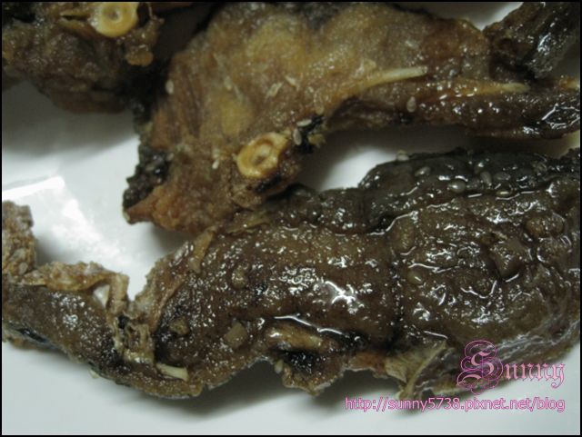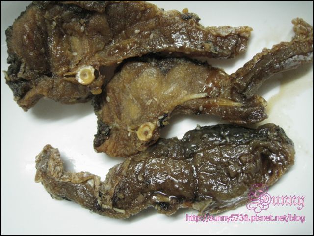 草魚切片後浸泡蜜汁醬再炸(或是烘烤?)