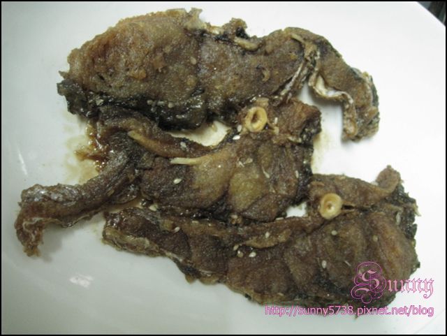 口味鹹甜,吃起來很像大塊固體的魚鬆,越吃越像