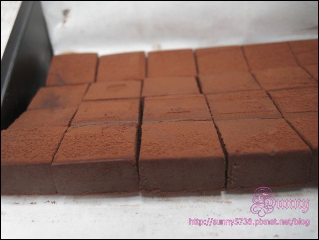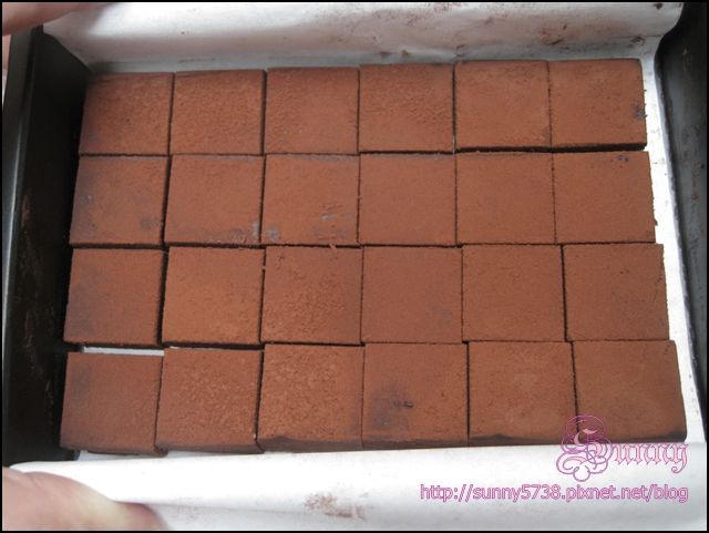 巧克力粉均勻的灑在每一塊生巧上面,勾引我的慾望