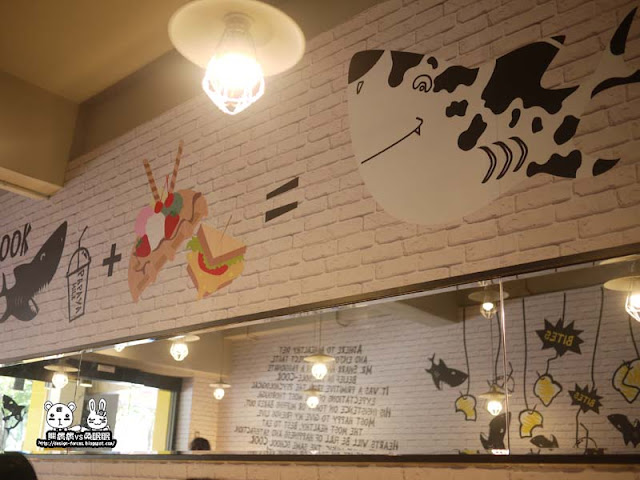 個人還蠻喜歡這家店的裝潢,這些鯊魚畫的太可愛了,牆壁上還有一排鏡子,也讓店內的空間看起來很大。