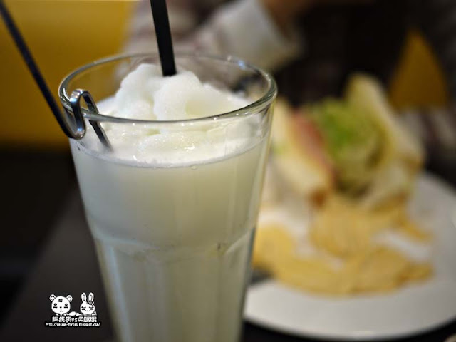 這是我點的飲料,好像是檸檬什麼來的(被兔呆傳染...有點健忘...),夾在飲料杯旁的湯匙很可愛,喝起來的檸檬很酸,但酸的很過癮的。(兔補充這叫檸檬優格冰沙,你自己健忘不要牽拖我)