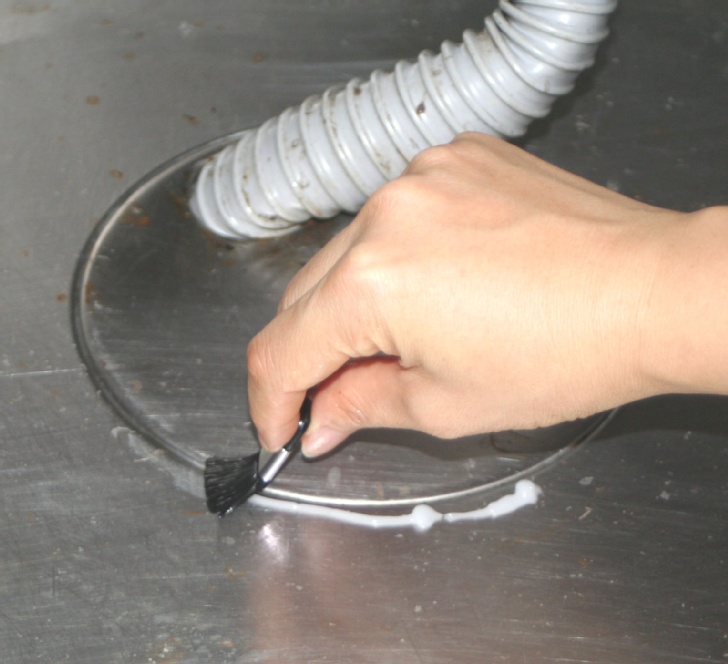 琉璃台下方大部分會有一個接水管的圓蓋,蟑螂最容易從這裏跑進來.所以, 這裏也再擦一下防蟑侵.