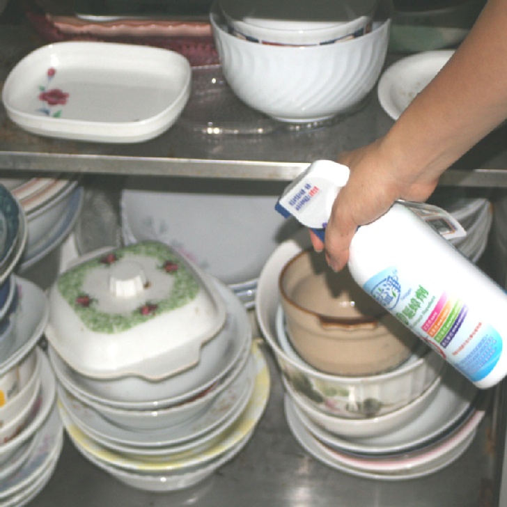 碗櫃清理之後,直接噴灑即可. 不用擔心吃到