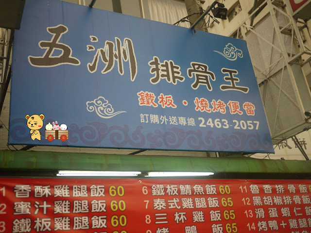 這幾天在台中搜尋美食的範圍,已經開始偏離宿舍附近了,某天回家騎過頭的路上,意外找到一家叫做五洲排骨王的店,起先吸引我目光的不是他的招排-排骨飯,而是其中一道蜜汁雞腿飯便當,竟然只要60元耶,心動之下就跑進去嘗試看看了。