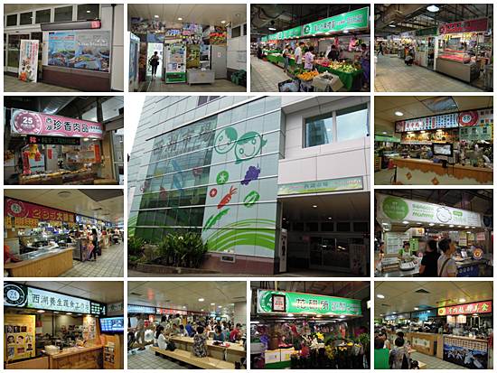 西湖市場位於捷運西湖站的一號出口,整個西湖市場分成兩樓,一樓為生鮮蔬果、花卉,二樓則是美食街與百貨廣場,環境整齊乾淨,光線充足,沒有惱人的氣味,逛起街來十分舒適,美食街更是上班族的用餐天堂,據說每到中午用餐時刻,都是座無虛席。