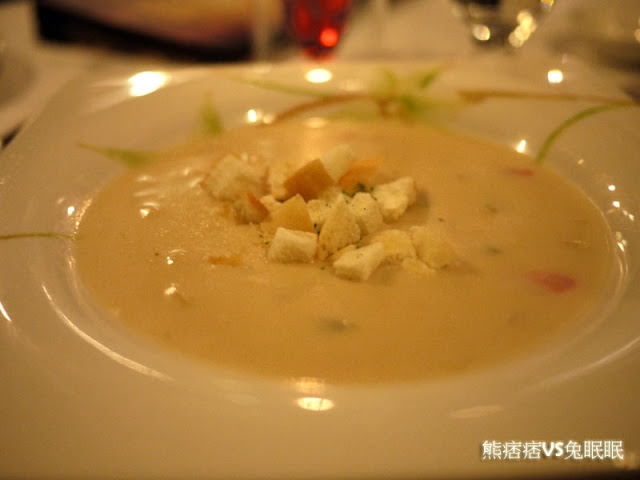 熊這次體驗的是海陸珍饌雙拼套餐,一開始前湯的部分,每天的湯都是不一樣的,會有兩種讓您選擇,像這次喝到的濃湯,熊覺得喝起來恰恰好,不會過於濃稠或稀疏,但沒有比較獨特的地方就是了。