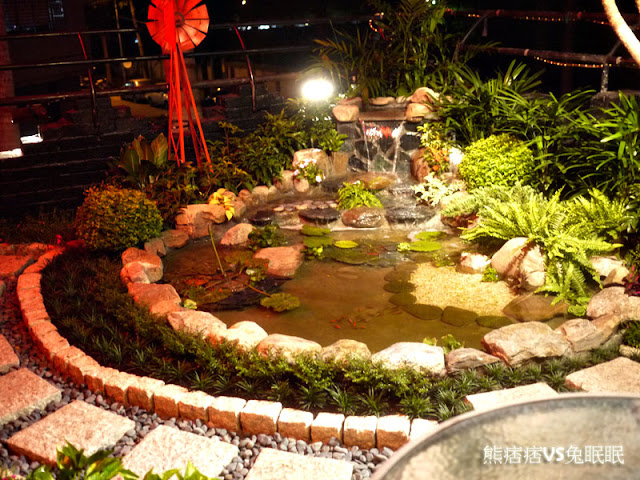 後來吃飽後,就跑去餐廳的二樓參觀,原來二樓有露天式的坐位,還有一個小花園的造型,真的很酷耶,沒想到剛剛吃飯的頭上...竟然有這種小水池再流動耶,真是意外的驚喜,整體吃下來,不論是氣氛或餐點都蠻優的,只是對於我們這種吃習慣銅板美食的人而言,價格會偏貴就是了,雖然兔兔一直跟我抗議她沒吃到,熊也只好默默的忽視臭兔呆了,哈。