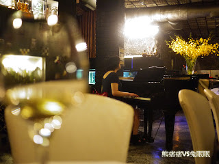 沒多久後,專業的音樂人員,開始彈起輕柔的鋼琴聲,由於這杯酒熊沒有另外一半可以敬,對面空空的哈,那就為您的專業敬上一杯吧!-////////-。