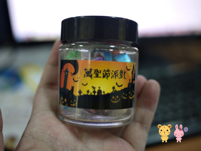 中間透明的瓶身加上萬聖節派對的標誌,很有節慶的感覺。
