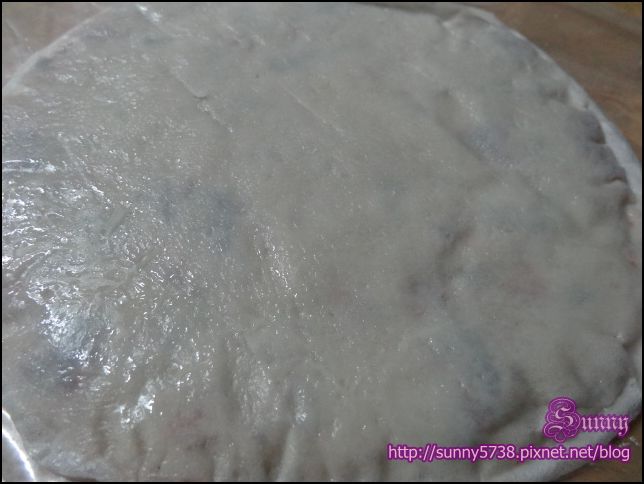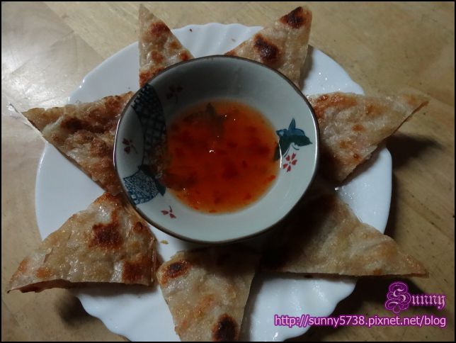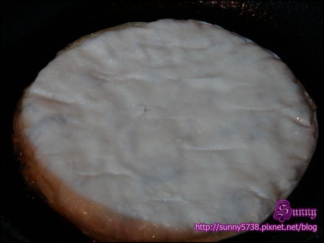 只要在平底鍋加入一點點油,像煎蔥油餅般的簡單