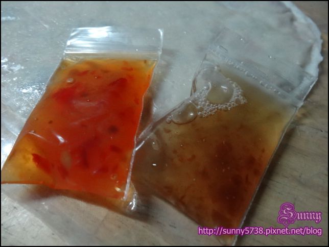 醬包有兩種口味~泰式酸甜醬或紫蘇梅醬