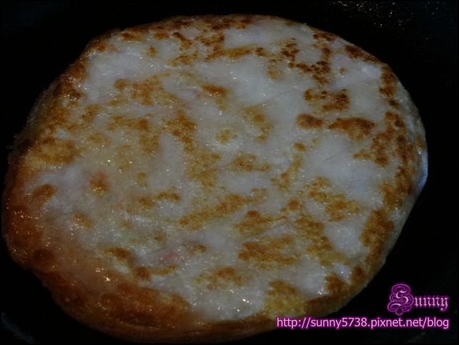 以中火煎個1分鐘左右,翻面,就有這樣微焦的漂亮顏色