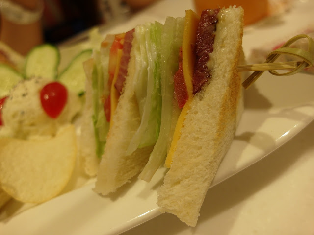 | 厚切牛排三明治,肉的厚度約為0.5公分,讓毛有點失望,本來以為應該最少會有一公分吧~這樣吃起來一定很夠味:P | |||||