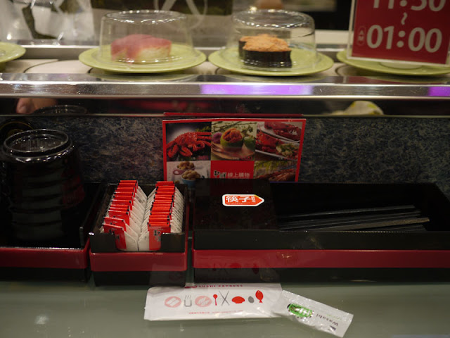 爭鮮迴轉壽司的壽司,是自助式的方式,拿多少算多少,看到台上有喜歡的菜,都可以直接拿下來,一盤是30元!