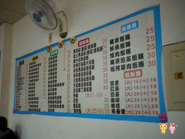 這是胖胖早餐店的菜單,看到沒!豬排飯團只要25元耶,而且豬排還是一大塊的,每次隨便點都吃很飽,最後點了超懷念的20元炒麵。