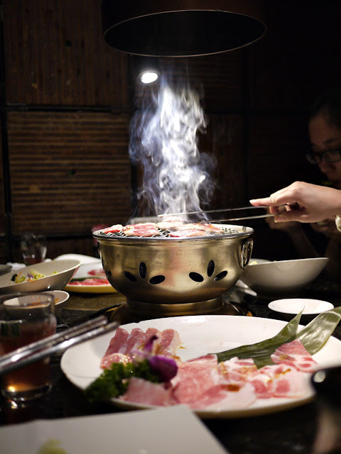 由於當天我們去的人有8位,所以店內額外贈送火鍋,據說是四個人以上就會有,一開始火鍋不是全熟的,需要在煮過,煮到滾了之後,會在淋上蛋汁讓他滾一會,火鍋中間的肉超級嫩又好吃!一下子就被掃光了,湯頭喝起來也很濃郁,我覺得這個火鍋很值得吃一吃!