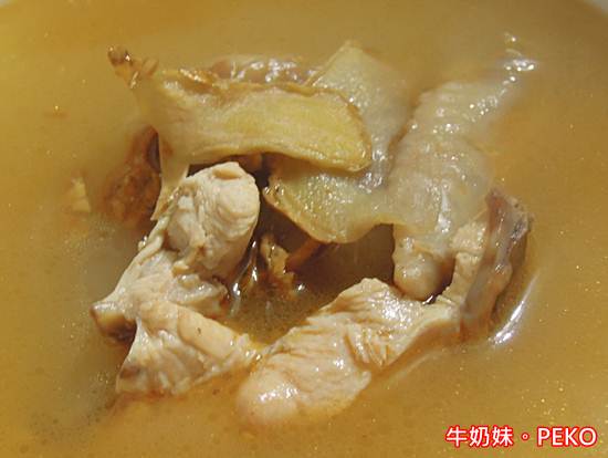 PEKO從小就愛喝香菇雞,自己也常用大同電鍋煮來喝,「麻雞王」的香菇雞湯口味清淡,湯頭清爽不油膩,十分順口。