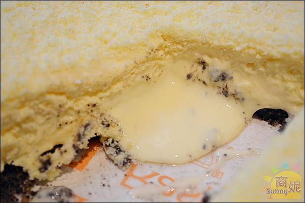 表層灑了滿滿的乳酪粉,上層是細緻的蛋糕,下層則是像OREO的黑色餅乾