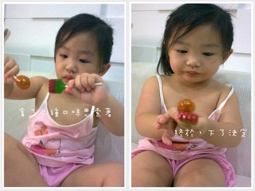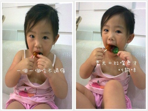 為了不讓寶貝在旁邊等呀等,拿了二款他最愛的棒棒糖給他,因為這次的圖比較多,我用動畫的方式